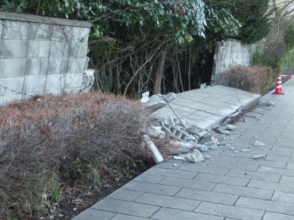 灯籠やブロック塀の被害は見られたものの,全壊・大破といった大きな被害を受けた建物は見られなかった.