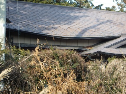 屋根の一部が崩れた建物があったが,12月8日の地震以前からこの状態であった